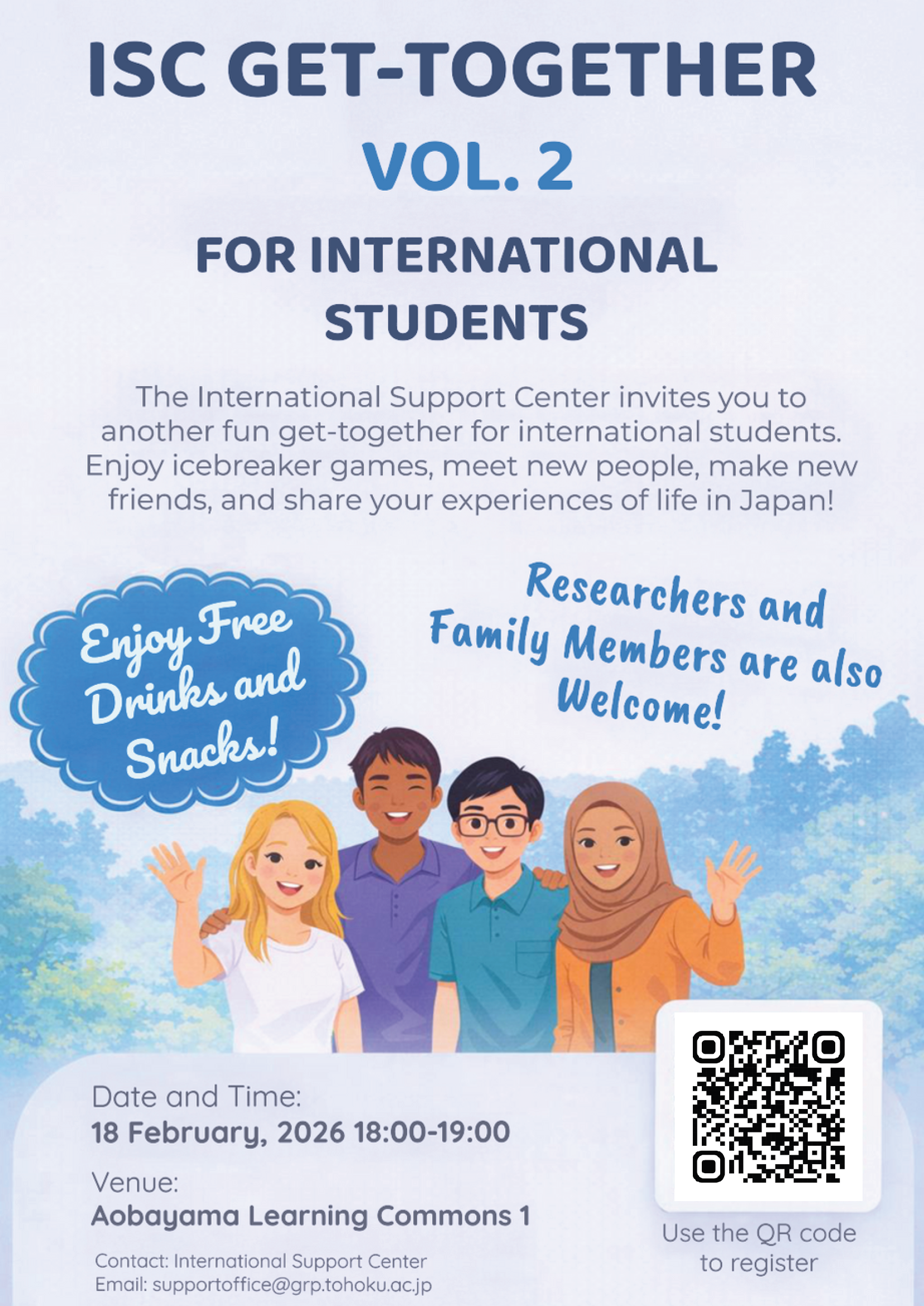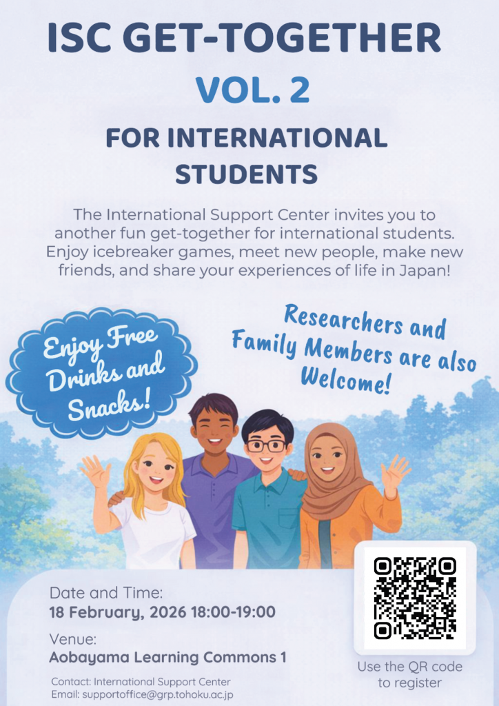 国際サポートセンターでは、留学生の皆さんを対象に Get-together Vol. 2 を開催します。